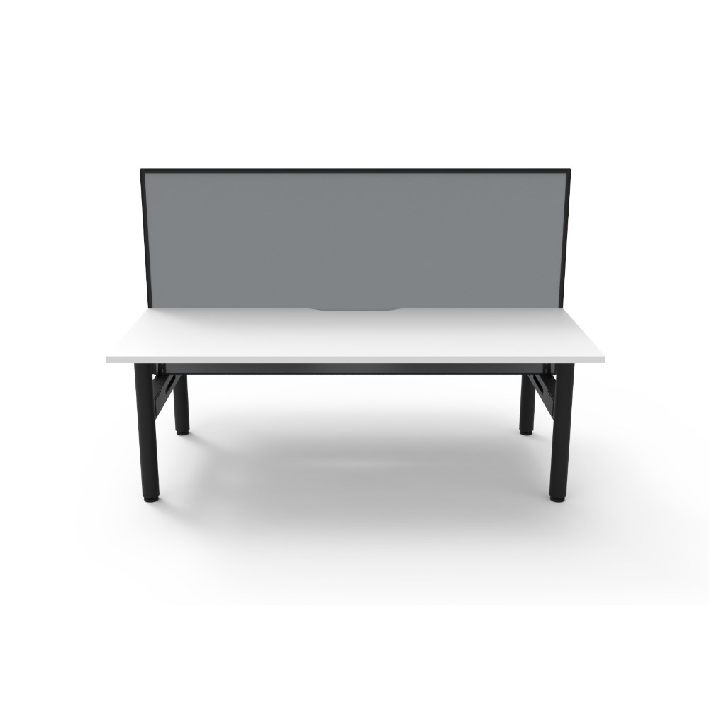 • Natural White top Black Satin frame. Double sided workstation with screen.