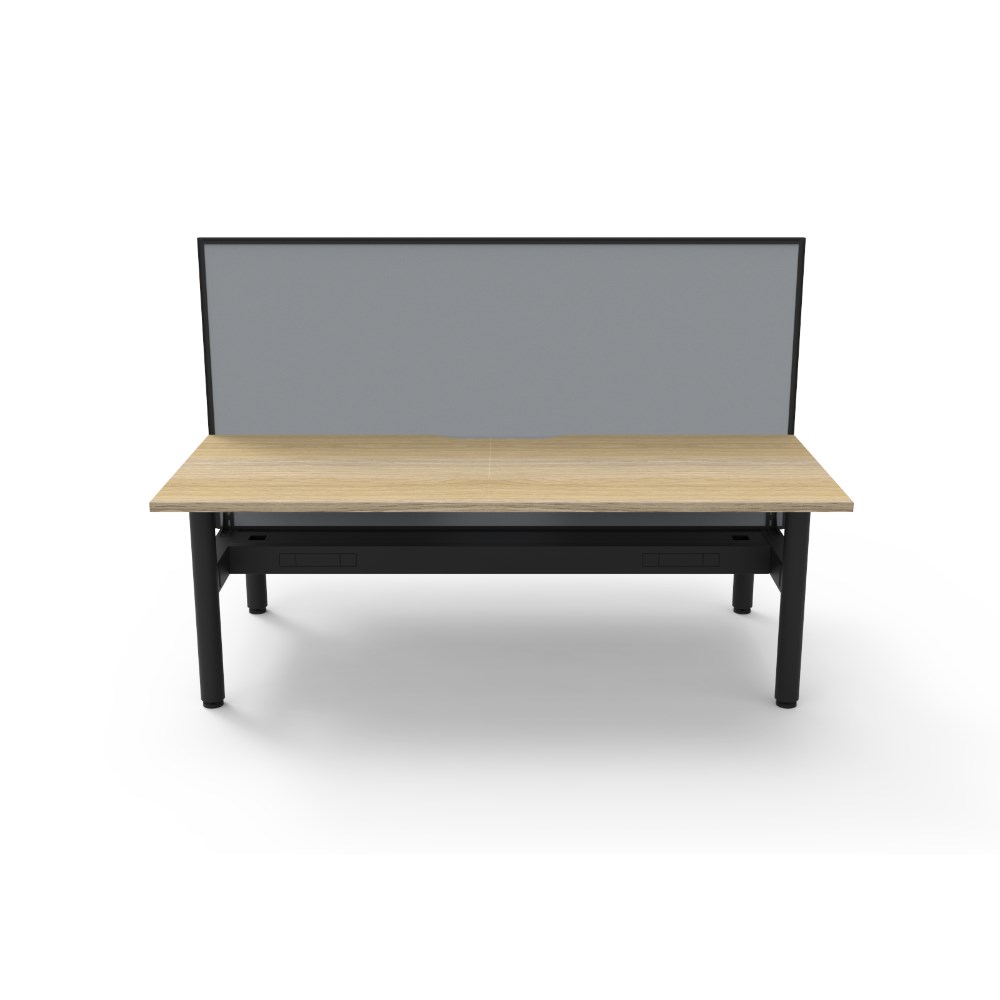 Natural Oak top Black Satin frame. Double sided workstation with screen and cable tray. Overall Dimensions: 1800W x 1500D x 1330mmH. Desk Per User Dimensions: 1800W x 750D x 730mmH. Height With Screen: 1330mm. E0 rated 25mm top with rigid edging and 50mm diameter scallop cut out to rear. Powder coated underframe. Adjustable levelling feet. Can be customised with optional accessories like cable management solutions and privacy screens. 10 Year Manufacturer's Warranty. Delivery, installation and assembly charges may apply to furniture. Please enquire to confirm.
