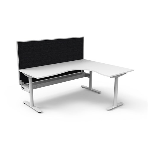 Rapidline Halo Static Corner Workstation + Screen + Tray 1800/1500W x 1330mmH White/Wht