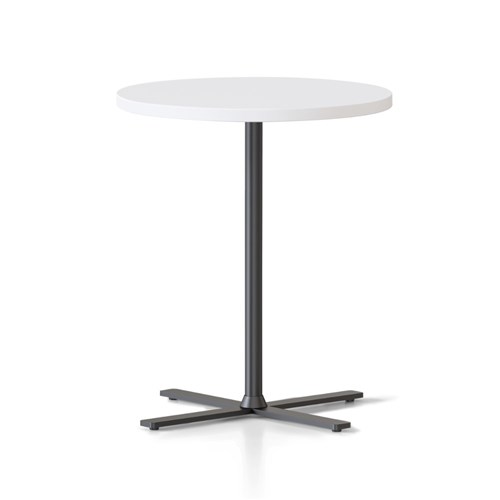 Dimensions: 500mm Diameter x 587mm High. 25mm thick table top. 4 leaf cross base powder coated underframe. Adjustable leveling feet. E0 enviroboard melamine worksurface. Note: Order with 457mmH Kolo table to create a nesting pair. 5 Year Manufacturer's Warranty. Delivery, installation and assembly charges may apply to furniture. Please enquire to confirm.