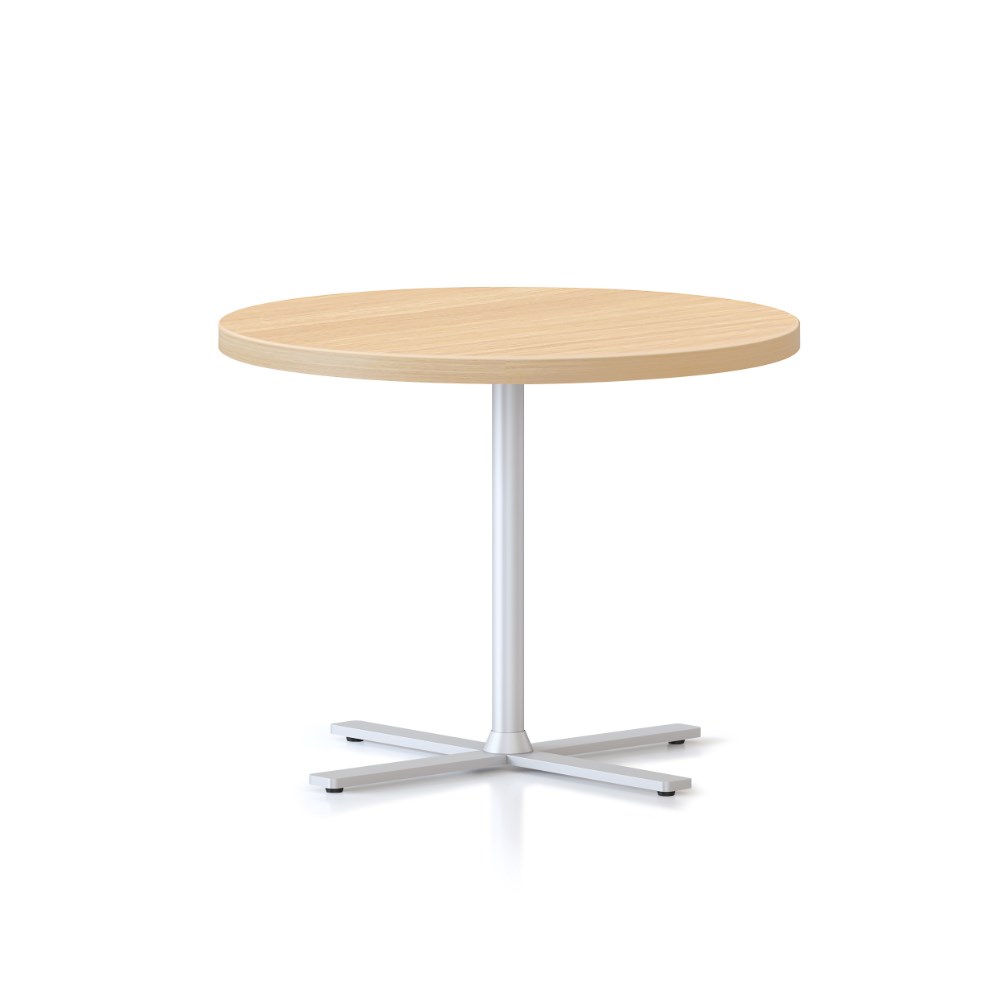 Dimensions: 600mm Diameter x 457mm High. 25mm thick table top. 4 leaf cross base powder coated underframe. Adjustable leveling feet. E0 enviroboard melamine worksurface. Note: Order with 587mmH Kolo table to create a nesting pair. 5 Year Manufacturer's Warranty. Delivery, installation and assembly charges may apply to furniture. Please enquire to confirm.