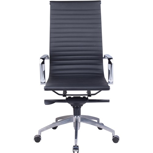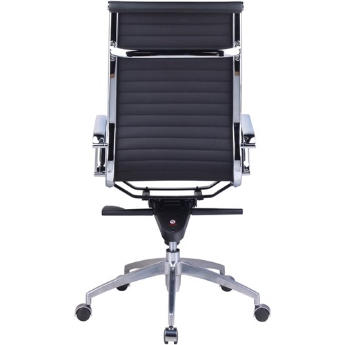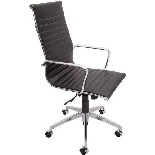 Rapidline PU605H Boardroom Chair Chrome Base And Arms High Back Black Ribbed PU