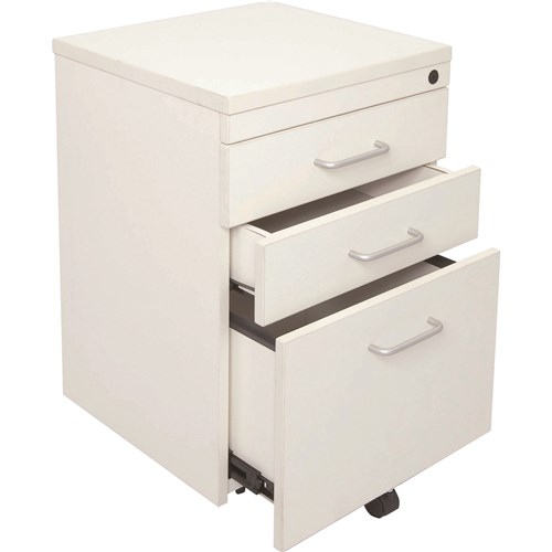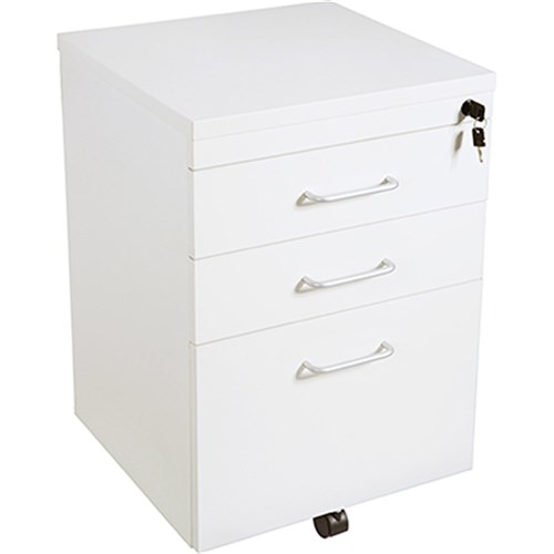 2 standard drawers and 1 file drawer. Lockable with metal runners. 5th wheel for stability and ease of opening. E0 enviroboard. 5 Year Manufacturer's Warranty. Delivery, installation and assembly charges may apply to furniture. Please enquire to confirm.