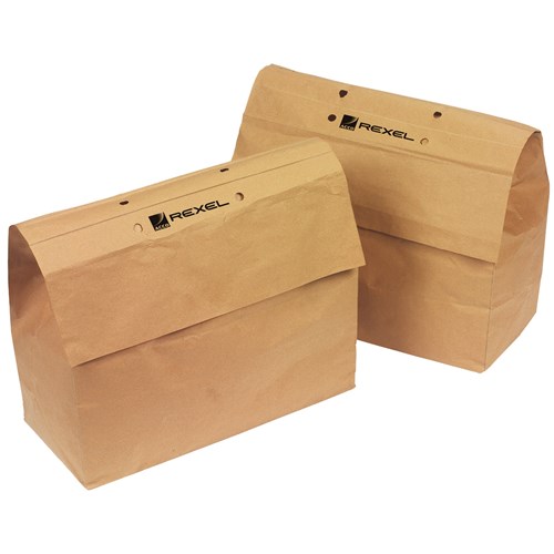 Designed specifically to aid the recycling of shredded paper. Self-Sealing to make waste disposal clean and efficient. Once full, simply seal the bag with contents and put out for recycling. Made from a paper material that can be recycled along with its shredded contents. Suitable for the Rexel Auto+100X/M shredder. Sack capacity: 26L.