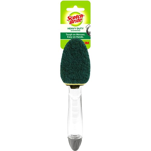 • Long Handle Replaceable Scouring heads Push button for extra soap.