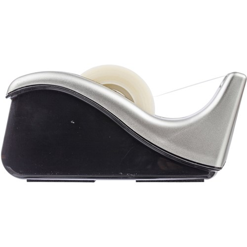 A sleek wave design. This dispenser is weighted so you won't accidentally move it around while you are using it. Cutters are extra sharp and won't wear with age, come loose or rust. A small dispenser and can hold tapes with up to a 30mm core. Dispenser only.