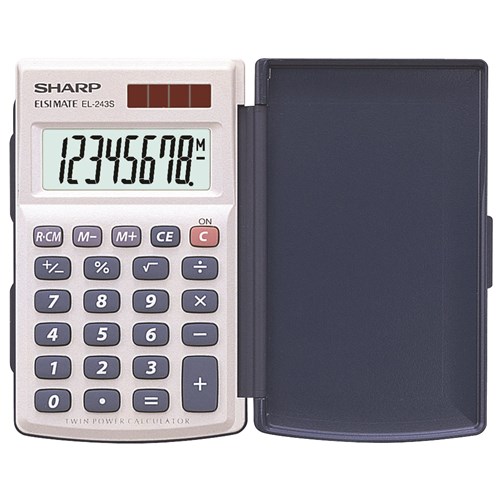 Sharp EL-243S Pocket Calculator 8 Digit Rubberised Keys Grey