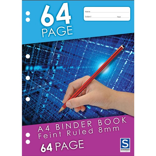 Sovereign Binder Book A4 8mm Ruled 7 Hole Punched 64 Page