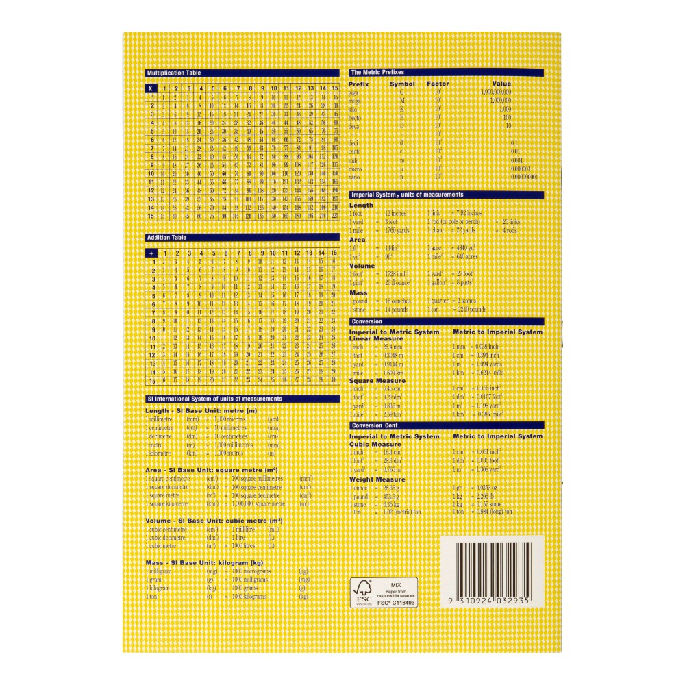 Made using only the best quality products to ensure school notes are kept neat and protected. 70gsm paper, durable gloss cover and sturdy staple binding to ensure the pages do not come loose. Includes a red ruled margin. Available in A4 with 48, 64, 96 and 128 pages. Available in 8mm Ruled, 9mm, 14mm, 18mm Dotted Thirds and Primary rulings.