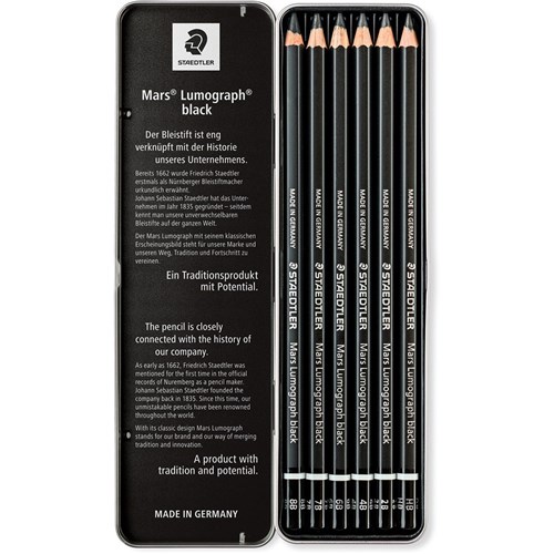 Staedtler 100 Mars Lumograph Sketching Pencils Assorted Degrees Black Pack of 6