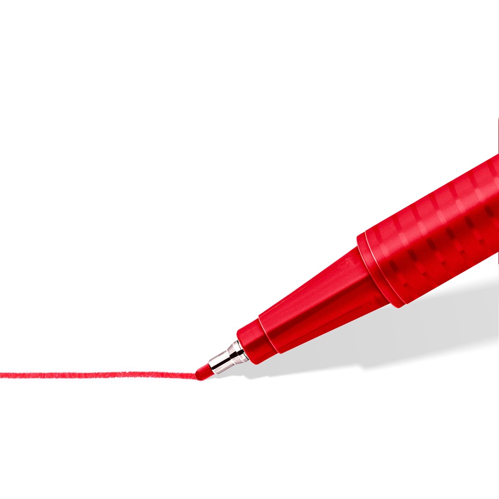 Ergonomic triangular barrel for effortless, fatigue free writing Dry safe ink Line width approximately 0.8mm Mix & match: all ink colours match the ink colours of the 323 fibretip pens and 334 fineliners Barrel with high quality matte finish in writing colour Cap and end plug in eye catching translucent design
