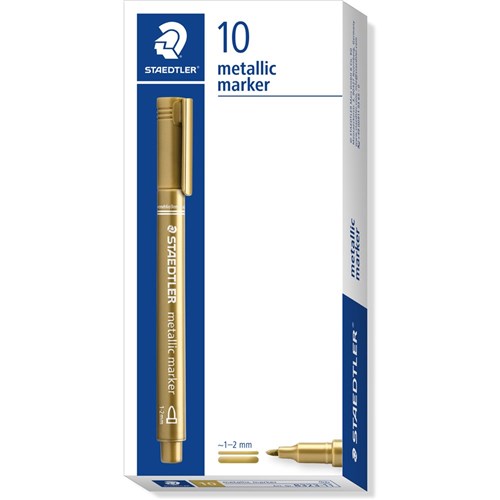 Staedtler® vibrant water based metallic markers. Smooth writing first time, everytime without shaking or pumping. Perfect for certificate writing, scrapbooking and greeting cards.