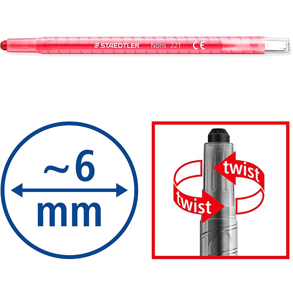 Easy to handle, just twist and draw. Colour intensive wax. High break resistance. 6mm diameter lead.