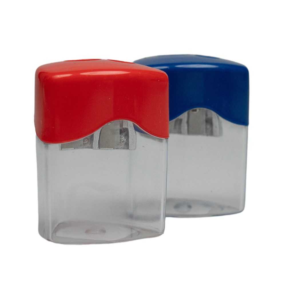 Stat Sharpener Double Hole Metal With Clear Canister Assorted