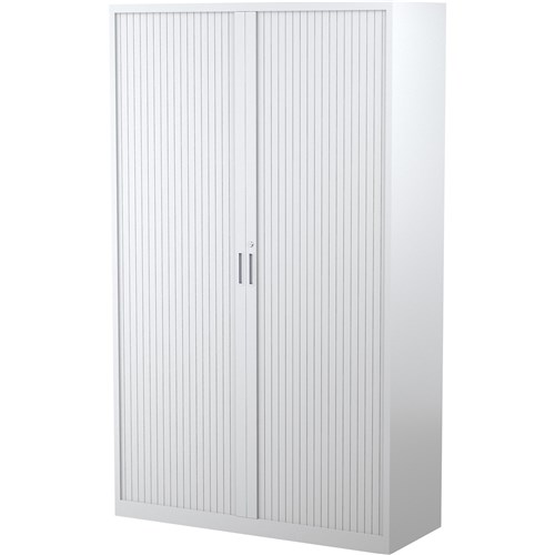 Steelco Tambour Door Cupboard Includes 5 Shelves 1200W x 463D x 2000mmH White Satin
