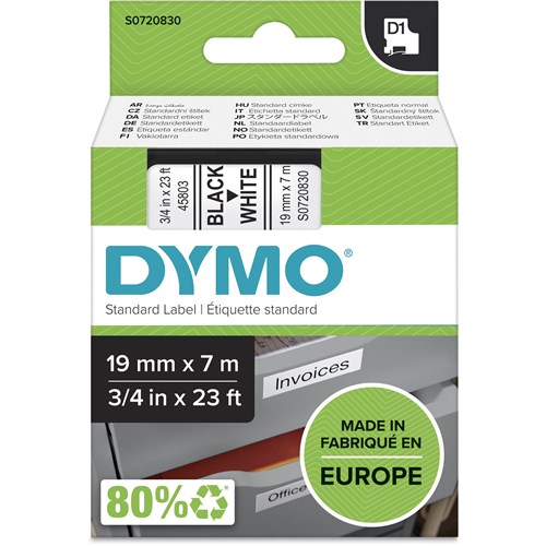 Dymo D1 Label Cassette Tape 19mmx7m Black on White