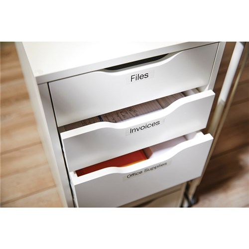 Created specifically for your LabelManager and LabelWriter Duo label makers, DYMO D1 labels offer the performance and variety you need for most labeling jobs in your home or in your office. Offered in a variety of widths and colors, D1 labels are available Easy Peel - for trouble free application. Thermal transfer printing. Remove labels without leaving adhesive residue. Adheres to most clean, flat surfaces including plastic, paper, metal, wood and glass. Water resistant. Withstands exposure to sunlight without fading or peeling. Withstands temperatures from -4 to +90 celsius cegree.