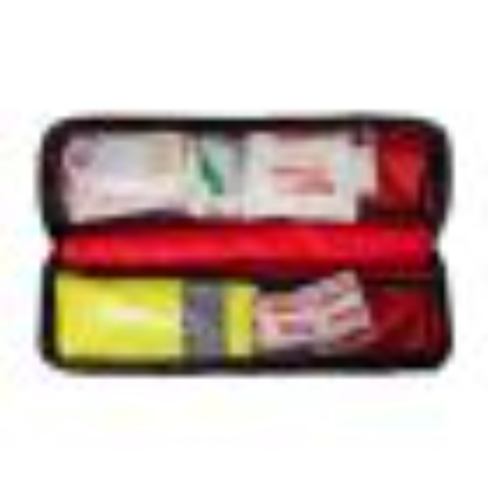 82-Piece Kit includes essential safety items for drivers. Hazard Warning Triangle for visibility during breakdowns. High-Visibility Vest enhances driver visibility in emergencies. Durable Boot Bag secures easily in your car with a Velcro panel. First Aid Supplies provides immediate assistance during vehicle emergencies while waiting for professional help. Contents: 50 x Adhesive First Aid Strips, 1 x Bag Resealable Plastic Small, 1 x Bag Resealable Plastic Medium, 1 x Bandage Conforming 5cm x 1.8m, 1 x Bandage Triangular 110cm x 110cm x 155cm. 2 x Dressing Non-Adherent 10cm x 10cm, 1 x Dressing Wound large, 2 x Eye Dressing Pads, 1 x Face Shield CPR With Valve, 1 x First Aid Quick Reference guide & contents guide. 1 x Gloves Disposable Pair, 1 x Notepad and Pencil, 12 x Safety Pins Assorted, 1 x Safety Triangle, 1 x Safety Vest High Visibility (Yellow), 1 x Scissors, 1 x Tape Hypoallergenic 1.25cm x 9m. 1 x Thermal Rescue Blanket, 2 x Wound Wipes. Always read the labels and follow the directions for use.