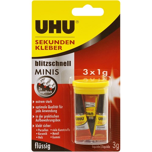 UHU Superglue Mini's 3x1ml Tubes Carded