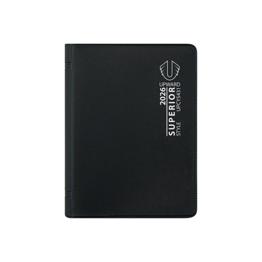 Easily withstands rigorous daily use. Padded, phthalate free, PVC cover, pockets for storing business cards and wire-o binding. Lay flat opening. Ribbon marker. Translucent pocket. Australian and New Zealand holidays. International holidays. International dialling. CPR chart. Travel contacts. Perpetual world time. Size: 105 x 74mm. FSC Certified.