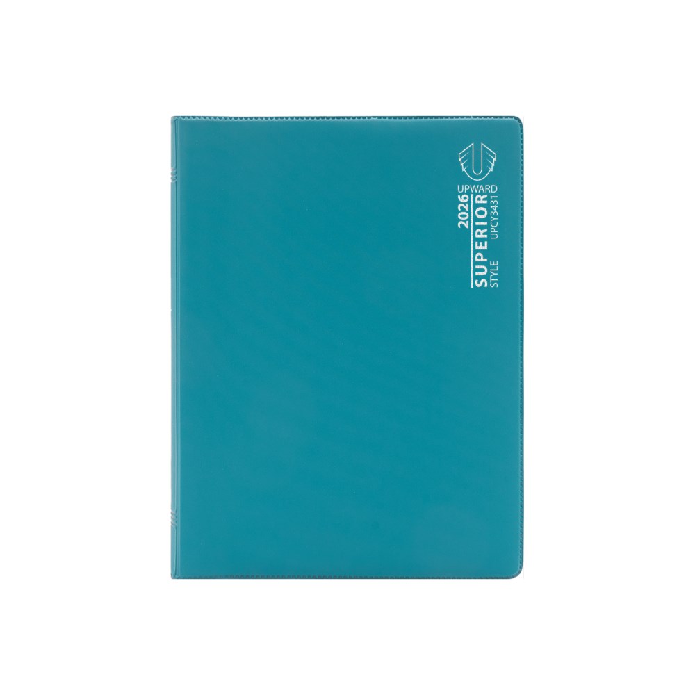 • Featuring a padded, phthalate free, PVC cover, pockets for storing business cards and wire-o binding to allow the diary to lie completely flat when open.