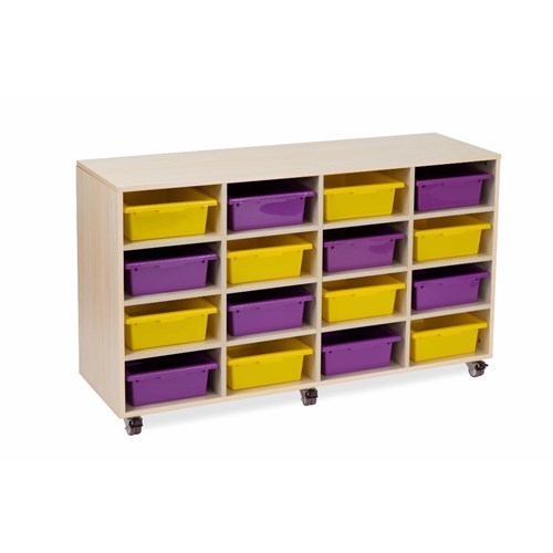 Trolley Only. Trays sold separately. Perfect to use with the Tote trays range. Also available as 12 bay storage unit, please see code 2793877. Mix and match the tote tray colours to create a stimulating learning space. The perfect storage solution for the classroom. Constructed from structural MDF and mounted on lockable castors. White oak wood with laminate finish. Delivery, installation and assembly charges may apply to furniture. Please enquire to confirm.