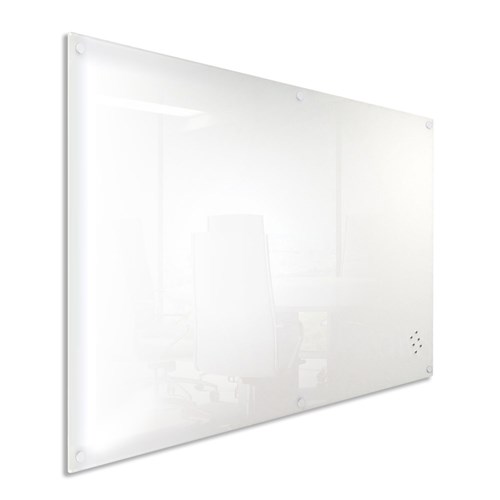 A contemporary alternative to traditional white boards highlighted by the translucency and elegance of premium glass. Toughened safety glass, non-porous surface will not ghost or stain and works with standard dry-erase markers. Tempered glass is borderless to create clean lines, uncluttered and ultra modern appearance. Polished edge and 6mm rounded corners. 12mm holes for fixing are space 35mm from edges. Includes clear acrylic pen tray and 5 super strong glassboard magnets. 50 Year warranty on erasing surface.