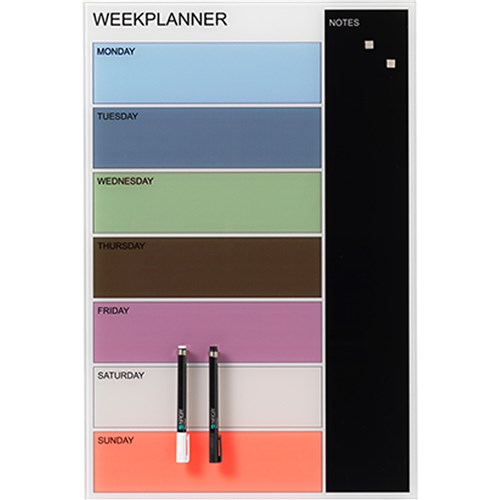 Visionchart Naga Glass Board 600x400mm Week Planner Coloured