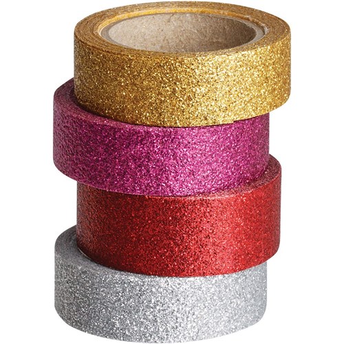 Zart Washi Glitter Tape 15mmx2.7m Assorted Colours Pack of 8