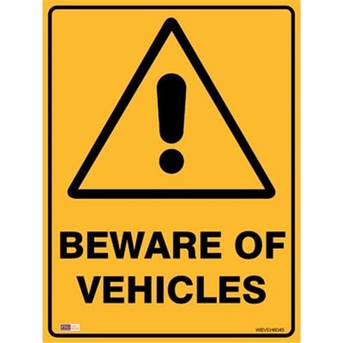 Zions Warning Sign Beware Of Vehicles 450x600mm Polypropylene