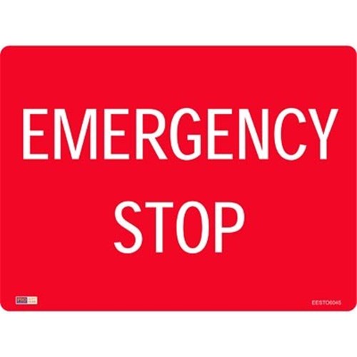 Zions Emergency Sign Emergency Stop 450x600mm Metal