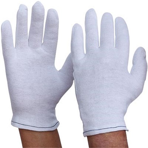 Lightweight and hemmed cuff. Bleached for clean appearance. May be used as a glove liner. Glove can be reversed and used on both sides.