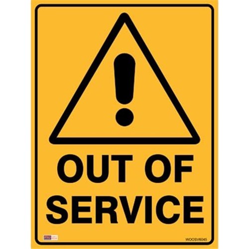 Zions Warning Sign Out Of Service 450x600mm Polypropylene