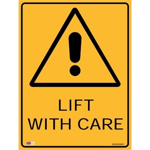 Zions Warning Sign Lift with Care 450x600mm Metal